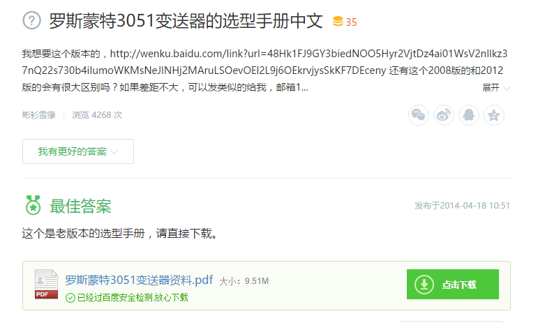 1、羅斯蒙特3051壓力變送器的選型手冊(cè)中文(我想要這個(gè)版本的,http://wenku.baidu.com/link?url=48Hk1FJ9GY3biedNOO5Hyr2VjtDz4ai01WsV2nllkz37nQ22s730b4iIumoWKMsNeJlNHj2MAruLSOevOEl2L9j6OEkrvjysSkKF7DEceny