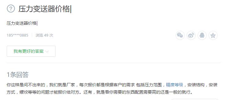 你這樣是問不出來的,我們就是廠家,每次報價都是根據(jù)客戶的需求 包括壓力范圍,精度等級,安裝結(jié)構(gòu),安裝方式,螺紋等等的問題才能報價給對方。還有,就是看你需要的東西配置需要高的還是一般的就行。