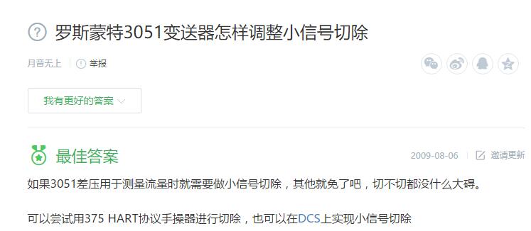 如果3051差壓用于測(cè)量流量時(shí)就需要做小信號(hào)切除,其他就免了吧,切不切都沒什么大礙。可以嘗試用375 HART協(xié)議手操器進(jìn)行切除,也可以在上實(shí)現(xiàn)小信號(hào)切除