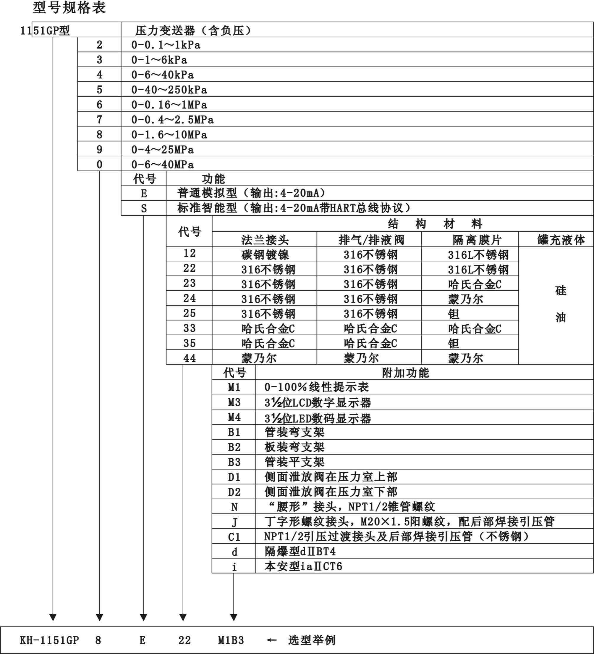 SLK1151GP電容式壓力變送器技術指標:遷移量:最大正遷移為最小調校量程的500%;最大負遷移量為最小調校量程的600%; 超壓極限:最程為200kPa以下的施加0(絕對壓力)~3.8MPa;6.89MPa以下的施加0(絕對壓力)~13.8MPa;量程為20.7MPa的施加0(絕對壓力)~31.4MPa;量程為41.3MPa的施加0(絕對壓力)~51.4MPa, 變送器無損壞,正常工作壓力高于3.4kPa(絕對壓力),法蘭可承受68.9MPa的壓力。 溫度影響:最大量程零點誤差:為量程的0.5%/55℃;最小量程零點誤差:為量程的3.0%/55℃ 安裝位置影響:最大可產生±0.25kPa的零點誤差,但可校正,對量程無影響。 結構尺寸: